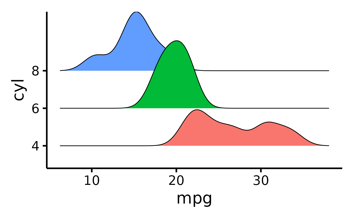mtcars |> plot_ridge(x = "mpg", y = "cyl", z = "gear")