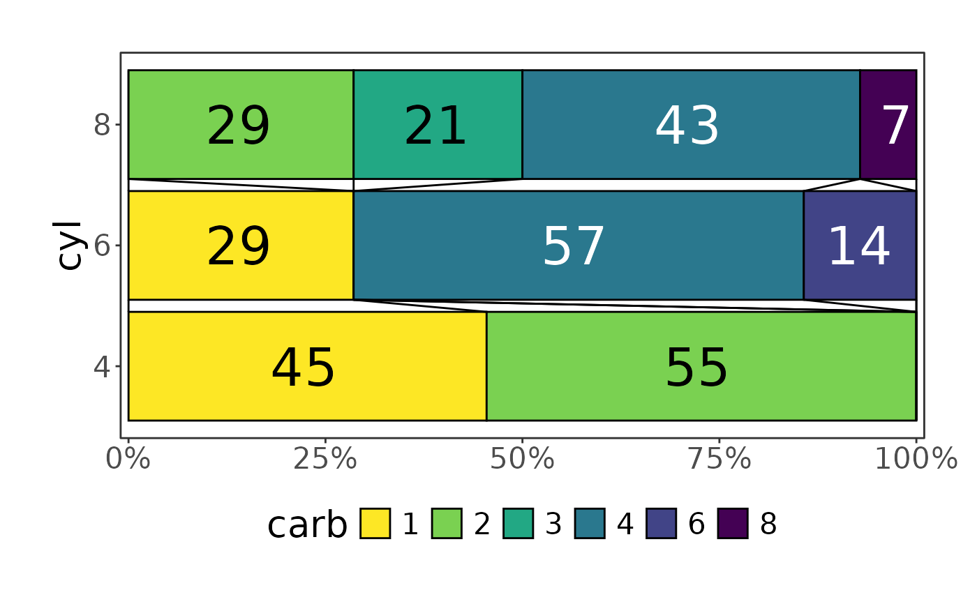 mtcars |> plot_hbars(pri = "carb", sec = "cyl")